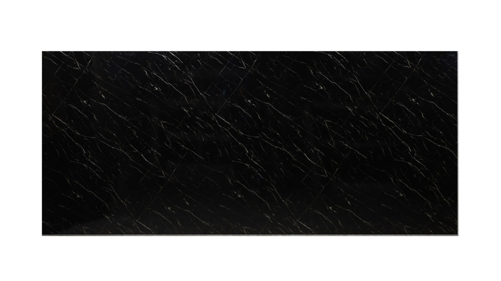 ماربل شیت ضد آب و آنتی باکتریال کد AP90526-A با رنگ های مشکی و رگه های سفید کمرنگ در ابعاد ۱۲۲ در ۲۸۰ سانتی متر با ضخامت ۲.۷ میلیمتر مناسب برای فضای داخلی